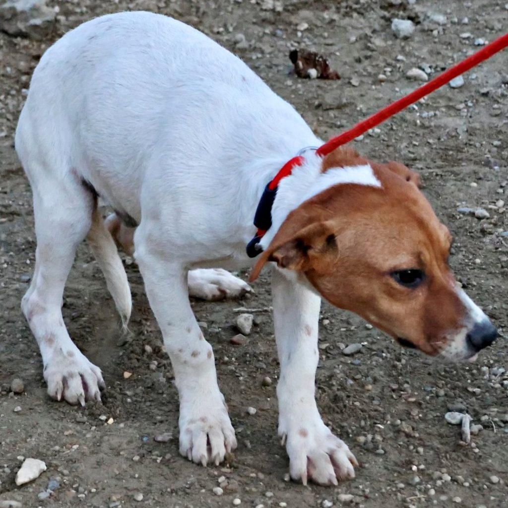 Atlas (4590), Mix-Hündin, geboren am 10.07.2025, hat auf den Bildern eine Schulterhöhe von 32cm und wiegt 8kg. Aufgrund ihres Alters noch nicht kastriert. Geimpft – gechipt – auf Mittelmeerkrankheiten getestet.