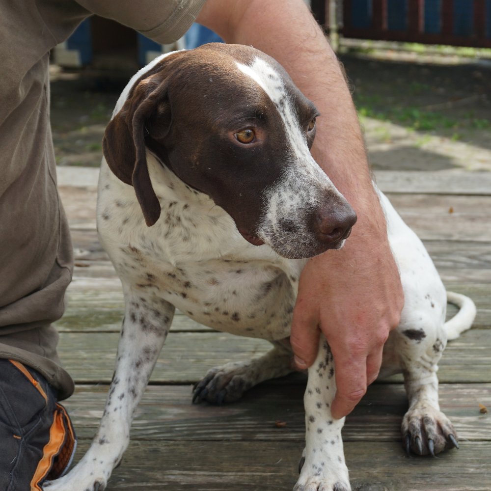 Negro (4436), Bretonen-Mix-Rüde, kastriert, geboren am 6. Januar 2022, hat eine Schulterhöhe von 48cm und wiegt 12kg.