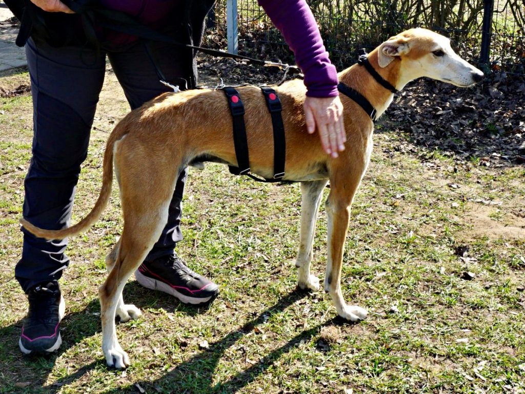 Coin (4579), Galgo-Espanol-Rüde, geboren am 01.01.2023, hat eine Schulterhöhe von 68cm und wiegt auf den Bildern 25 kg. Kastriert – Geimpft – gechipt – auf Mittelmeerkrankheiten getestet.