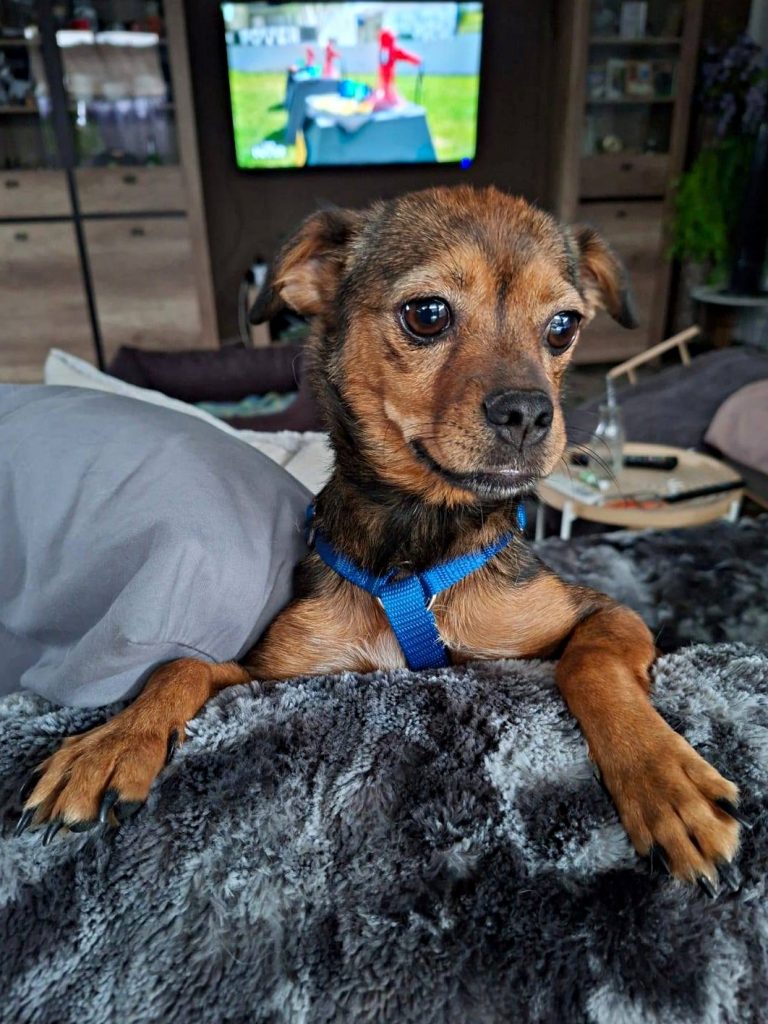 Electra (4541), Chihuaha-Mischlings–Hündin, geboren am 03.03.2024, ist 22cm groß und wiegt 4kg. Kastriert – geimpft – gechipt – auf Mittelmeerkrankheiten getestet.