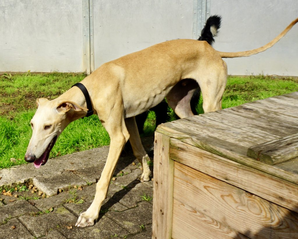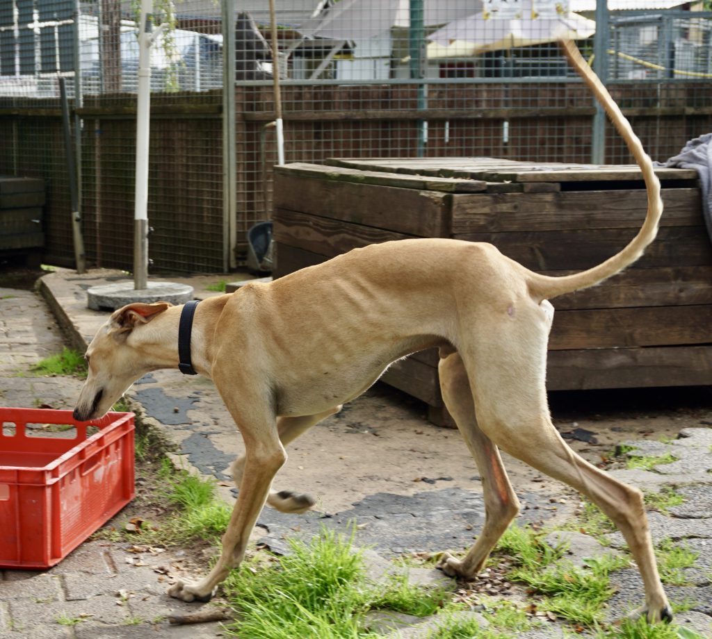 Jarle, Galgo Espanol Rüde, geboren im März 2025, befindet sich noch im Wachstum. Jarle ist im Tierheim geboren und noch nicht kastriert. Geimpft – gechipt – auf Mittelmeerkrankheiten getestet.