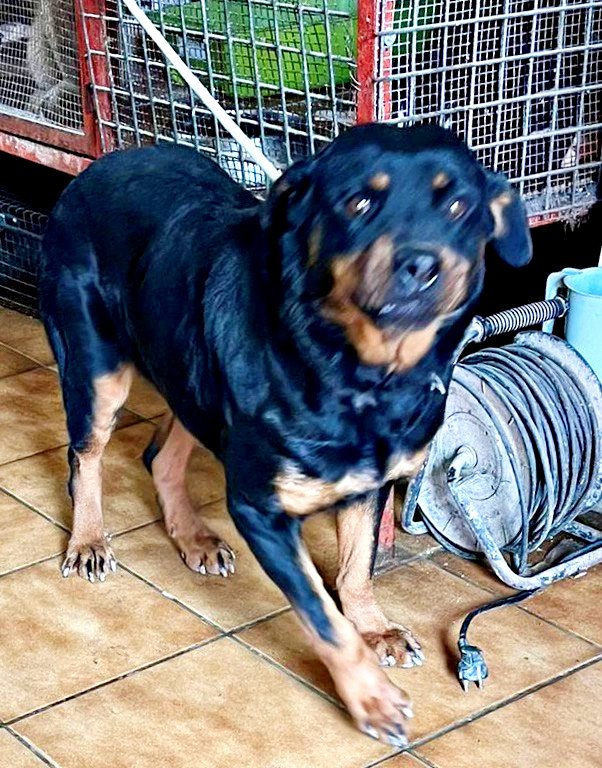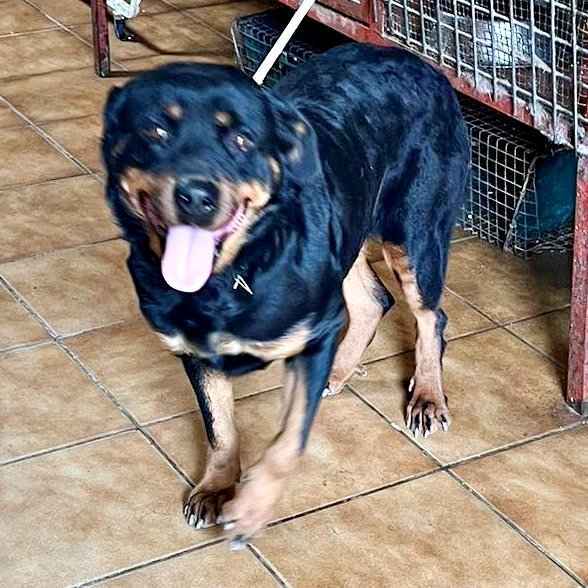 Kelly, Rottweiler-Hündin, ist drei Jahre alt, hat eine Schulterhöhe von 59cm und wiegt 42kg. Kastriert- geimpft – gechipt – auf Mittelmeerkrankheiten getestet.