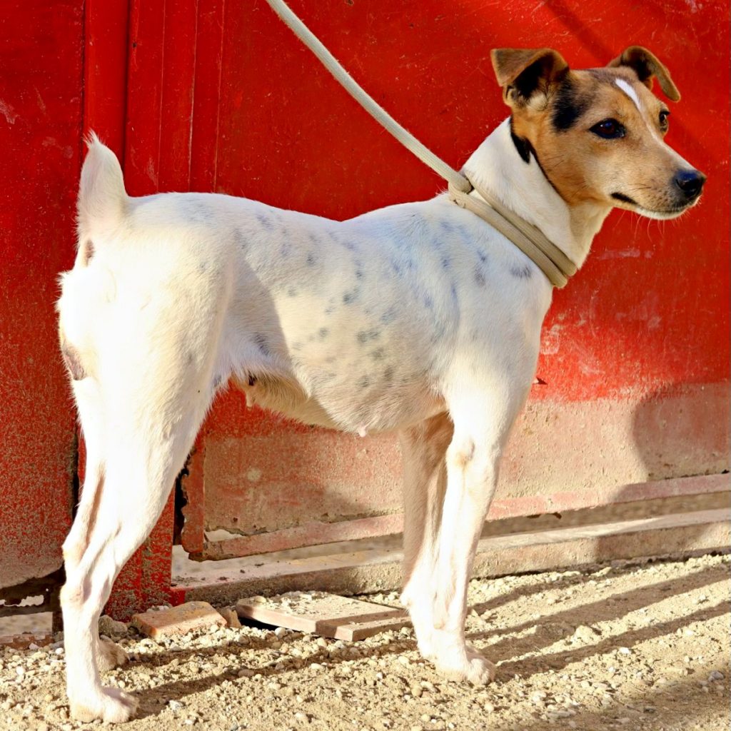Lara (4598), Bodeguero-Mix-Hündin, geboren am 10.01.2024, hat eine Schulterhöhe von 35cm und wiegt 5kg. Kastriert – geimpft – gechipt – auf Mittelmeerkrankheiten getestet.