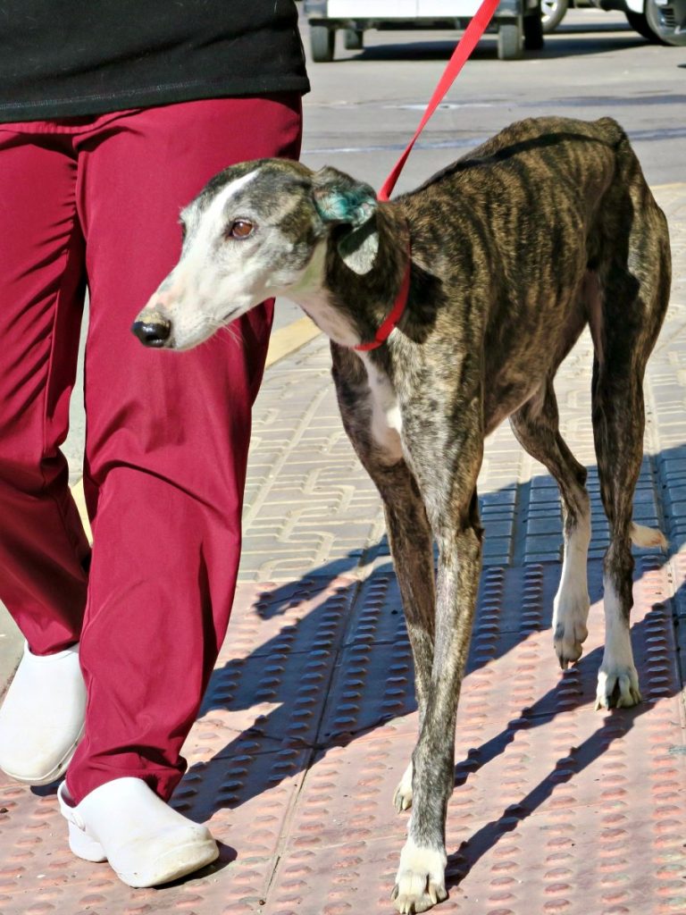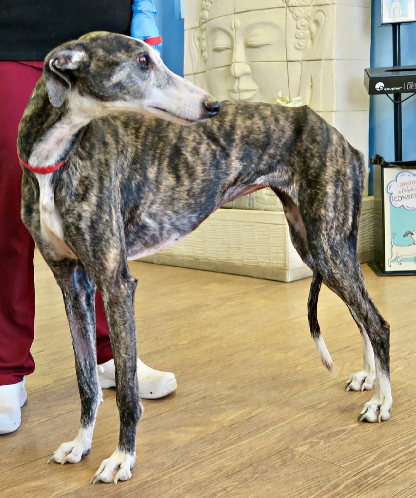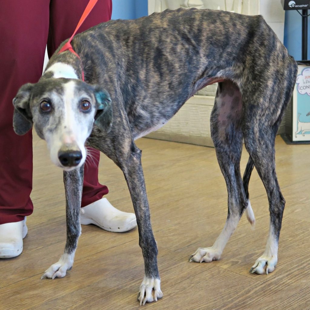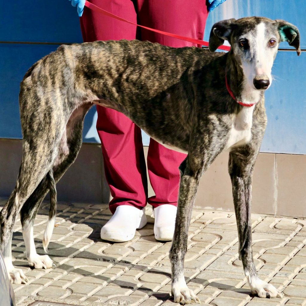 Maggie (4611), Galgo-Espanol-Hündin, geboren am 10.05.2022, hat eine Schulterhöhe von 66cm und wiegt 19,9kg. Kastriert – geimpft – gechipt – auf Mittelmeerkrankheiten getestet.