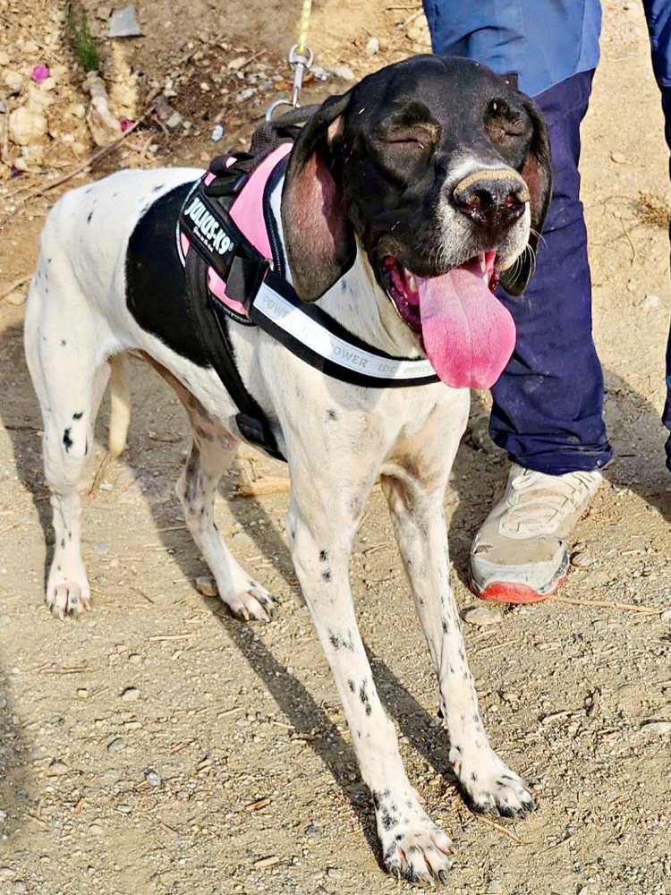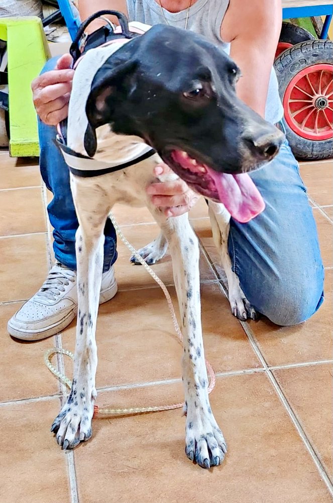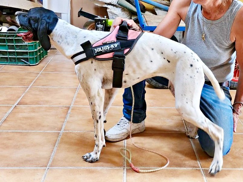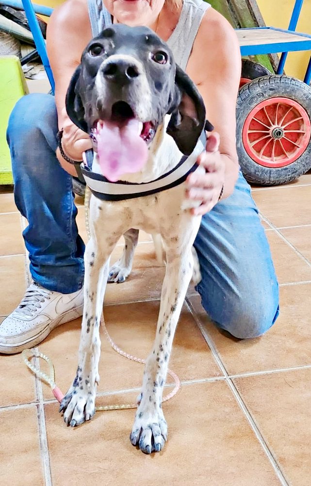 Mancha (4573), Pointer-Mix-Hündin, geboren am 17.01.2025 hat auf den Bildern eine Schulterhöhe von 56cm und wiegt 17,5kg. Kastriert – geimpft – gechipt – auf Mittelmeerkrankheiten getestet.