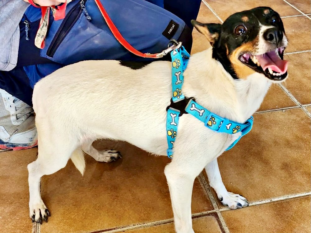Mily (4550), Bodeguero-Mix-Hündin, geboren am 04.04.2021, hat eine Schulterhöhe von 33cm und wiegt 6kg. Kastriert – geimpft – gechipt – auf Mittelmeerkrankheiten getestet.