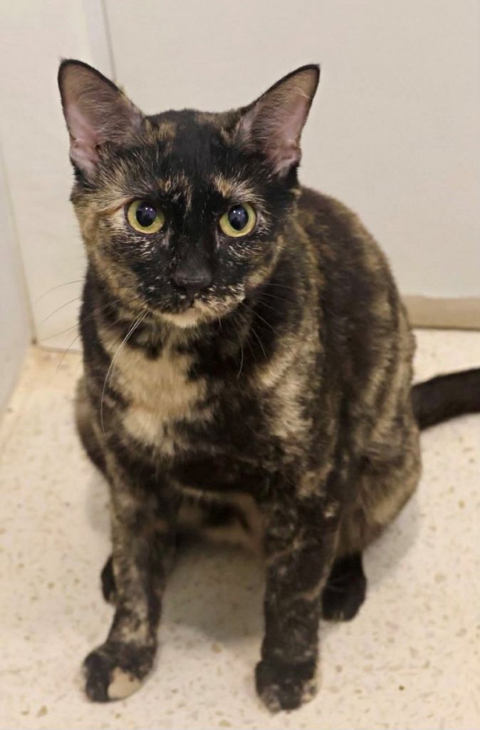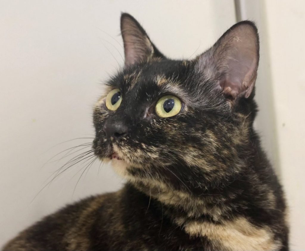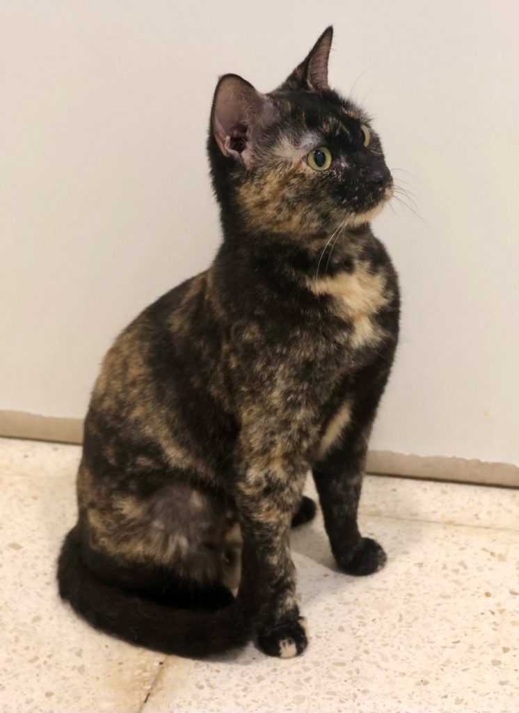 Rosa ist mit ihrem gestromten Fell wahrlich eine Augenweide und gleichzeitig super goldig. Sie zeigt sich bei uns im Tierheim: