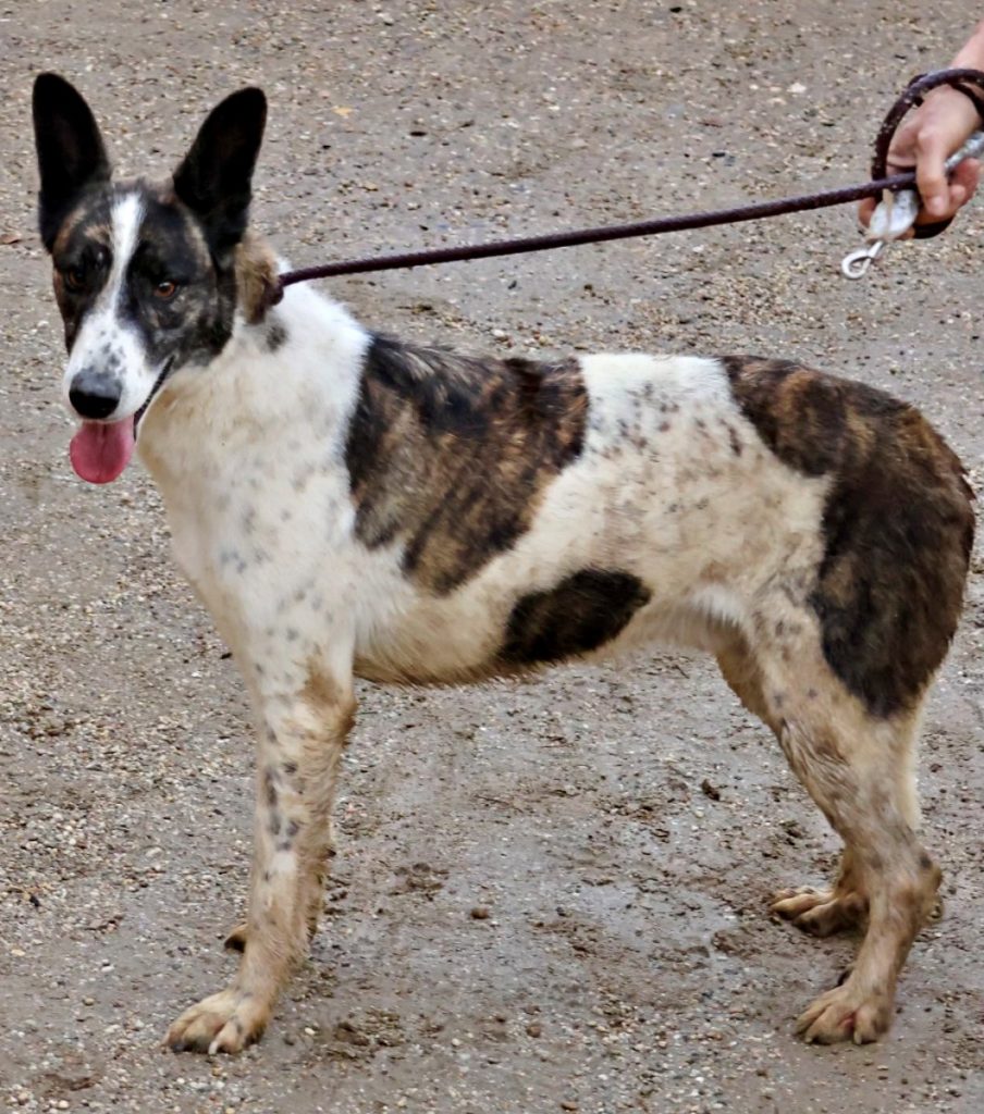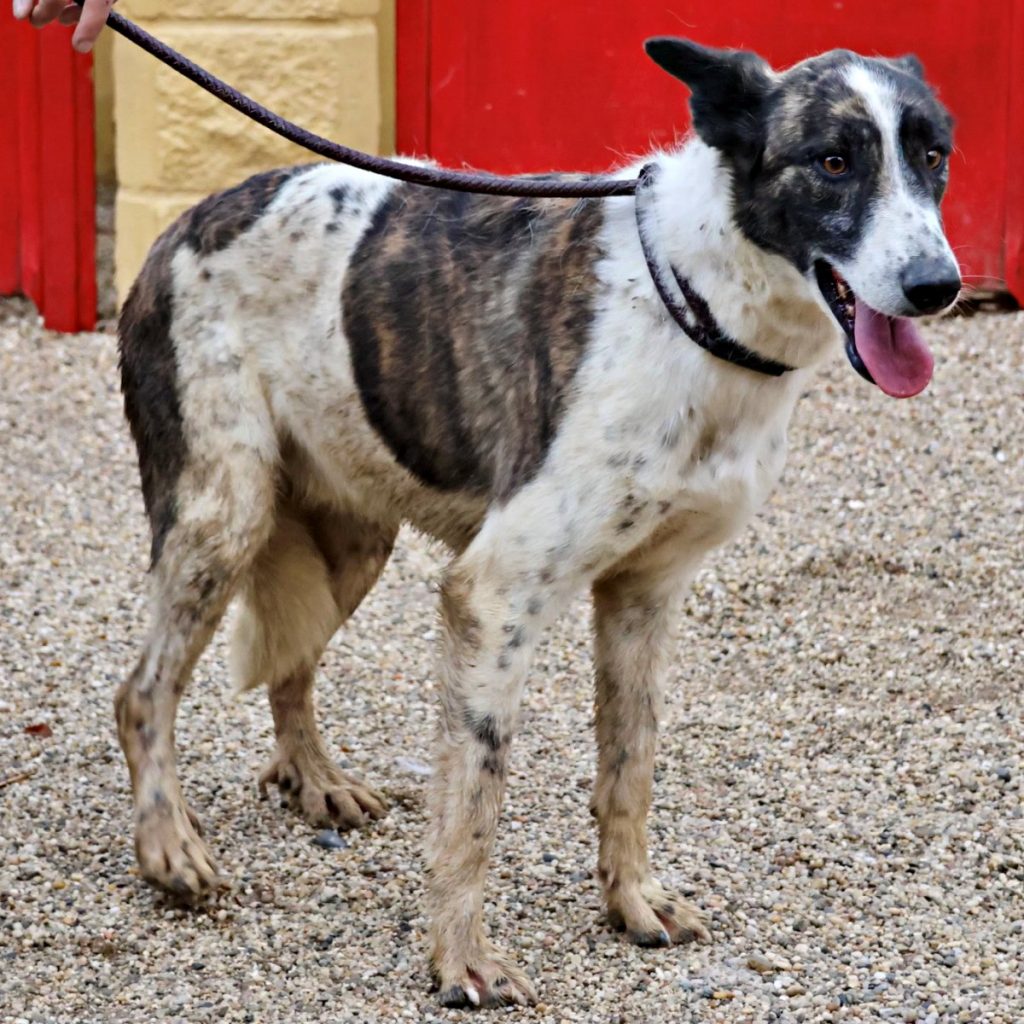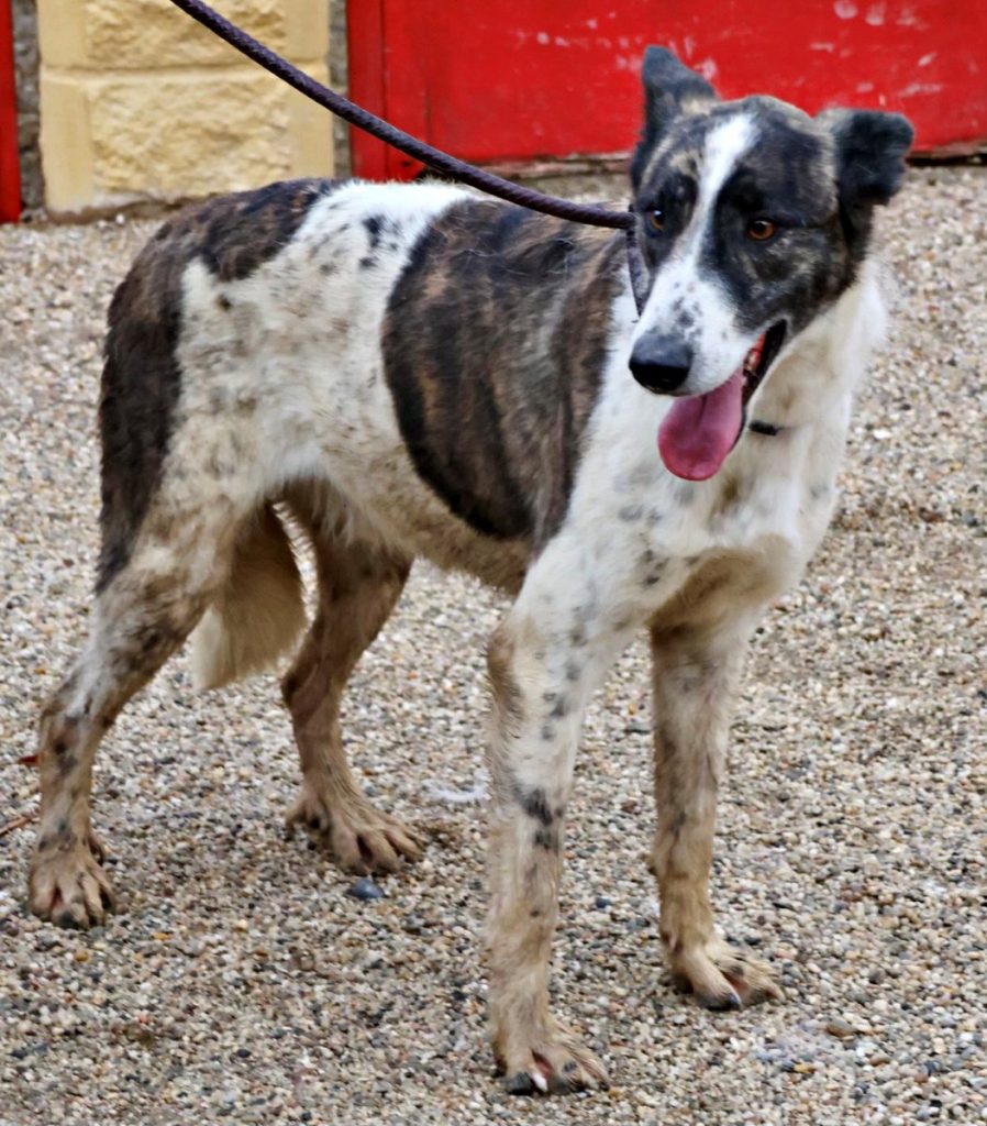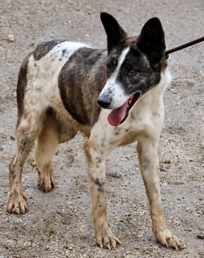Rudolfo (4341), Mix-Rüde, geboren am 14.07.2022, hat eine Schulterhöhe von 56cm und wiegt 24kg. Kastriert- geimpft – gechipt – auf Mittelmeerkrankheiten getestet.