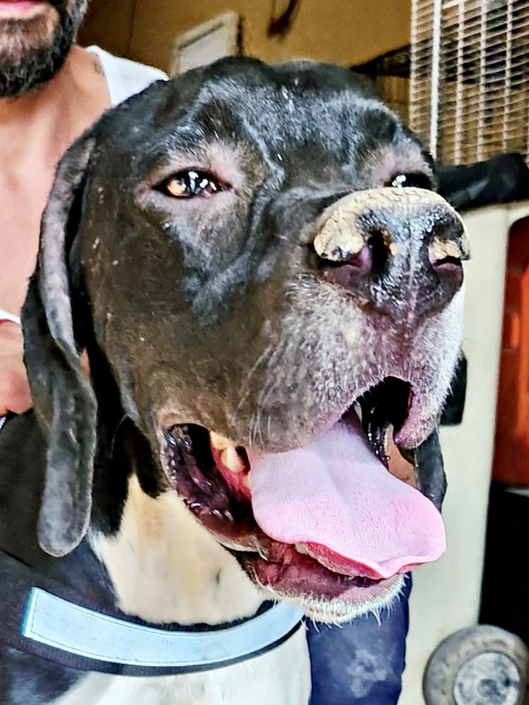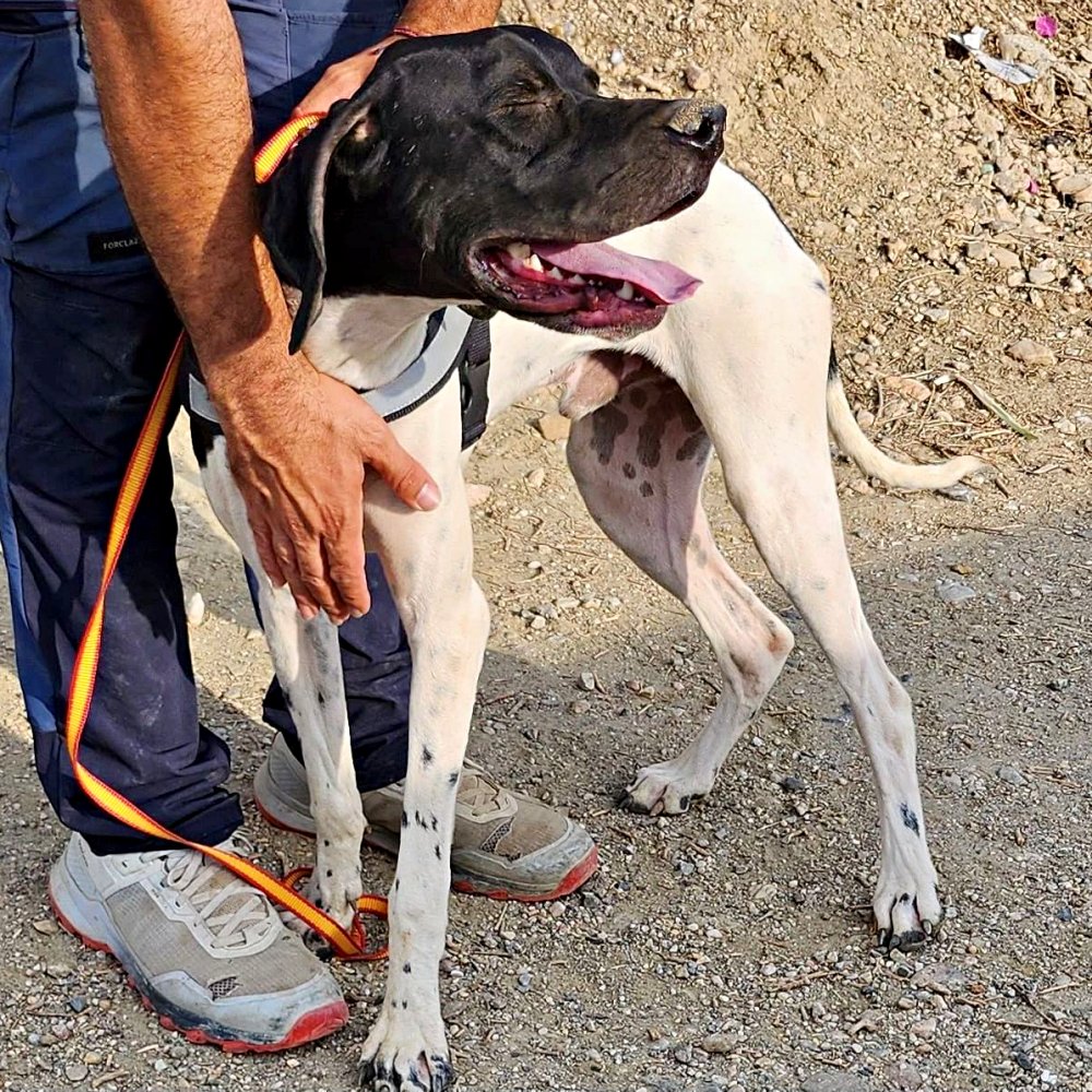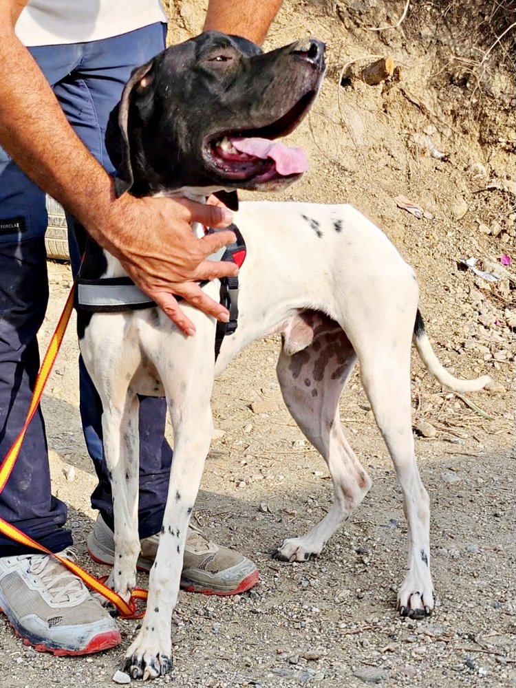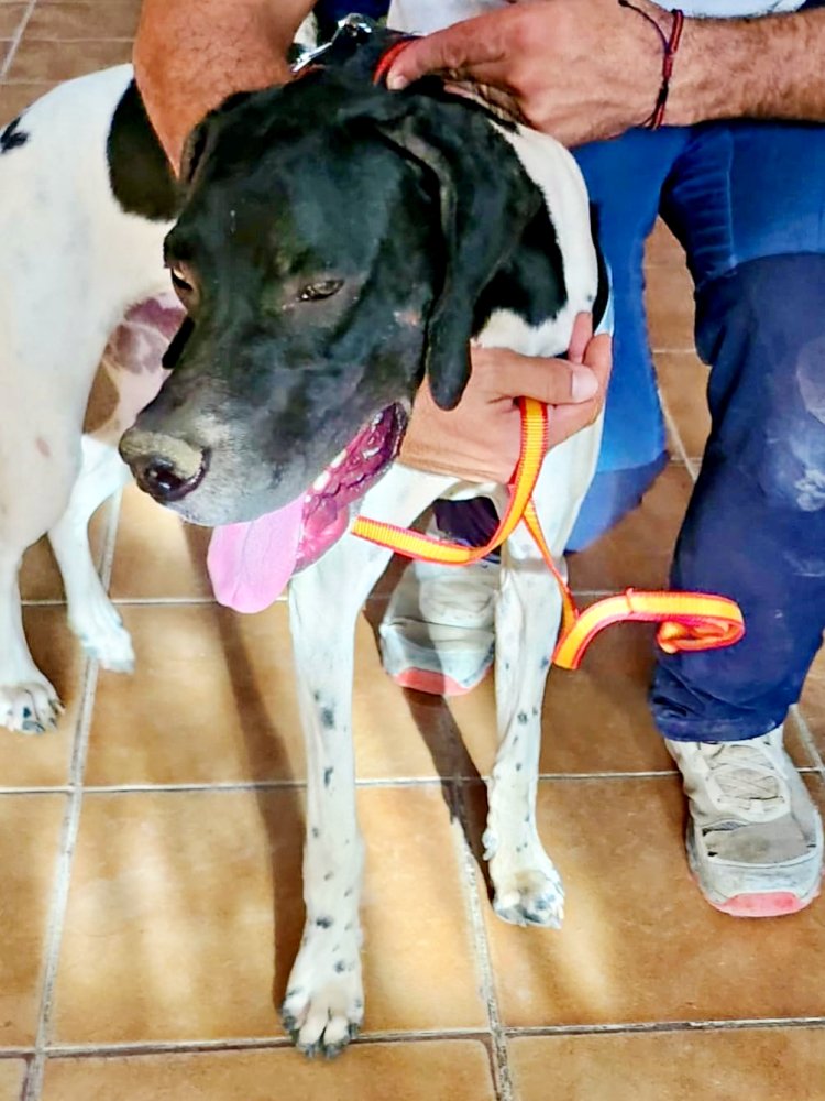 Vicente (4574), Pointer-Mix-Rüde, geboren am 07.01.2025 hat auf den Bildern eine Schulterhöhe von 60cm und wiegt 21kg. Kastriert – geimpft – gechipt – auf Mittelmeerkrankheiten getestet.